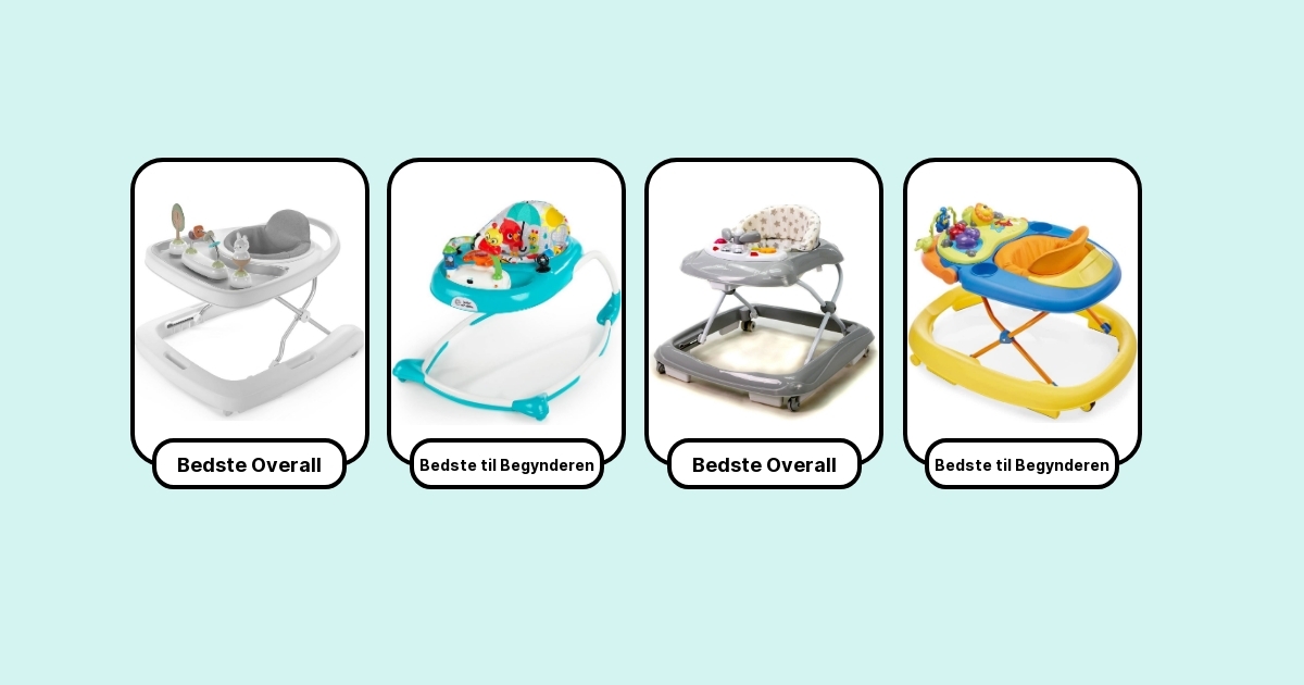 Hvis du undervejs bliver i tvivl, så husk at det mest sikre og udviklingsstøttende altid er mere gulvleg og mindre gåstol. De 7 bedste modeller er dem, du sjældent har behov for at bruge.