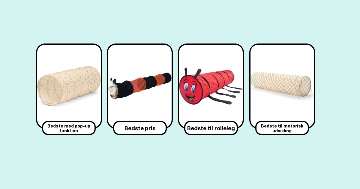 Til sidst vurderer jeg, hvordan tunnellen skaber leg: Kan den kobles på andre elementer? Har den kigpaneler, så nervøse tumlinger tør kravle igennem? Folder den sig ud og sammen uden kamp? De 7 anbefalinger herunder dækker forskellige behov, rumstørrelser og budgetter.