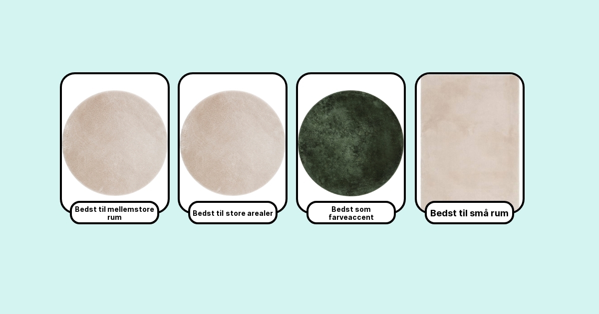 Jeg har målt luvhøjde og tæthed, tjekket kanter og bagsider (latex vs. gel), testet hvor meget de fælder, hvordan de tager imod støvsugeren, om de krøller i hjørnerne, og om de spiller pænt sammen med gulvvarme. Jeg har også kigget på materialer (uld, polypropylen, polyester), lugt ved udpakning, OEKO-TEX-certificeringer og hvor godt de skjuler krummer fra sofahjørnet.