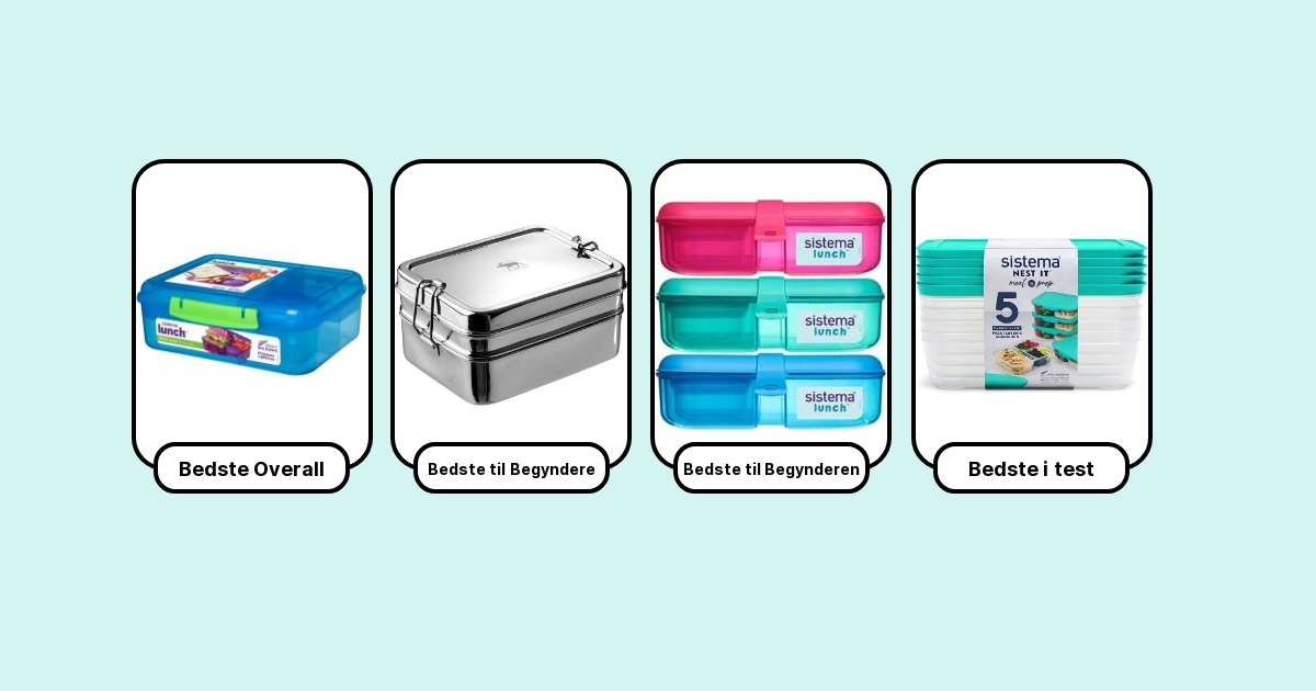 Bedst til børnehave og indskoling: En let plast-bento med store, tydelige låse og integrerede, ikke-aftagelige rum. Den skal åbnes med én hånd og have afrundede hjørner. Ingen små løse dele, der forsvinder på legepladsen.