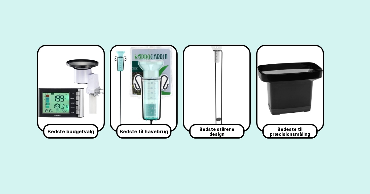 Jeg har især kigget på millimeter-præcision, ensartet opsamling i vind, hvor let de er at tømme og rengøre, materialernes holdbarhed i frost/UV samt montering (spyd, rørklemme, væg). For de smarte modeller handler det også om stabil forbindelse, app-kvalitet, batteritid og eksport af data.
