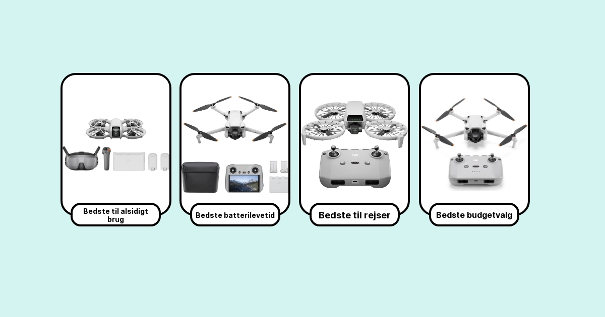 Her er de 7 bedste droner lige nu: fra den ultralette rejsemakker til den filmklare kraftpakke. Uanset om du er nybegynder, content creator eller bare jagter længst mulig flyvetid, finder du din favorit her.