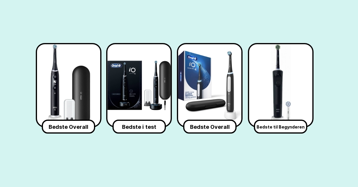 Jeg favoriserer modeller, der leverer konsistent ydelse på tværs af mundtyper (tætsiddende tænder, krone/bro, følsomt tandkød), snarere end dem, der kun imponerer på papiret. De 7 vindere herunder er dem, jeg ville sætte i min egen tandkrus – af forskellige grunde og til forskellige behov.