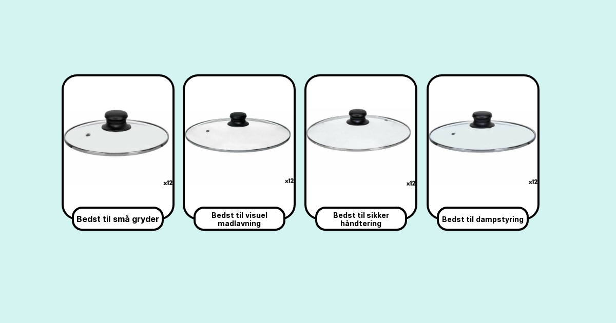 Du får gode glaslåg fra budgetniveau, men spring et niveau op, hvis du vil have stålkant, bedre knop og pænere finish. Universallåg med silikonekant koster lidt mere, men sparer plads og passer til flere gryder.