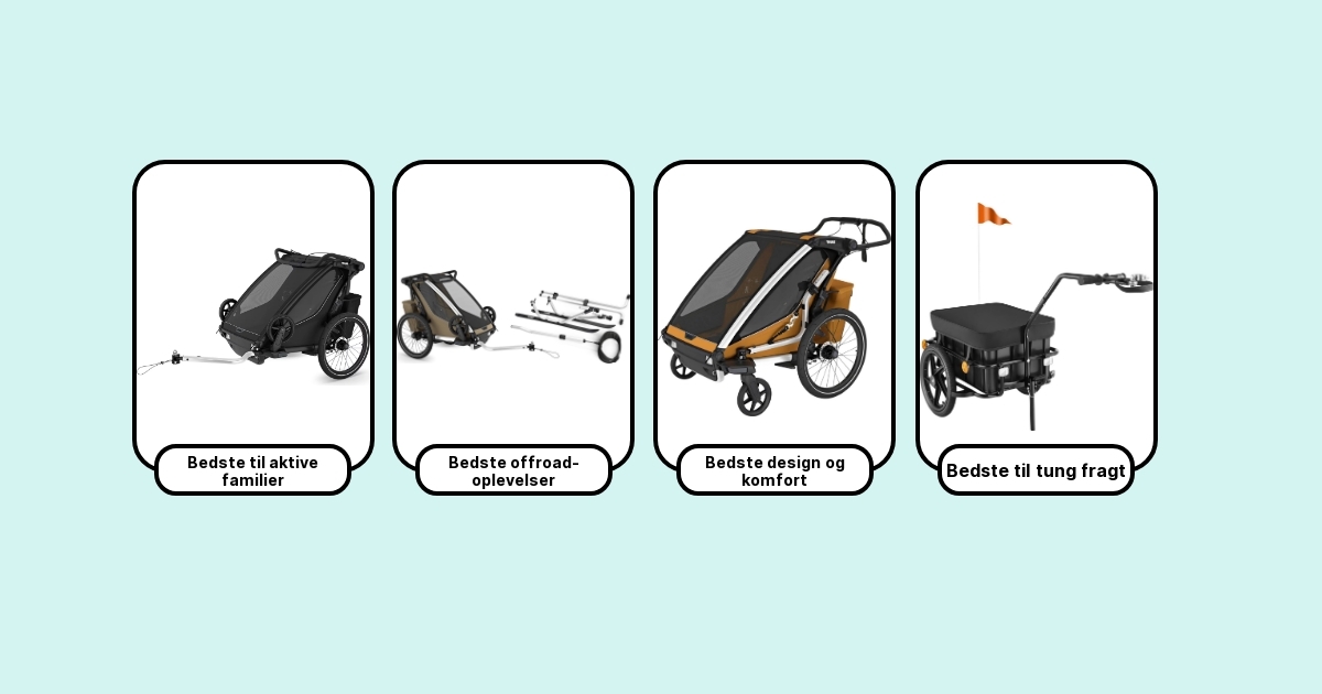 Jeg har kørt cykeltrailere gennem regn, modvind og over våde brosten med både barn, hund og fulde indkøbsposer. Undervejs har jeg lært, hvilke modeller der holder sporet i skarpe sving, hvilke der rasler efter 5 km – og hvilke der får ungerne til at tage en lur uden protester.
