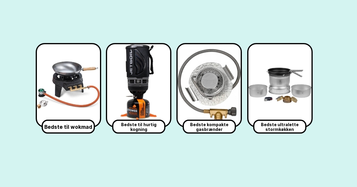 Hvis du laver rigtig mad til flere, så vælg et klassisk Trangia-sæt med gas. Skal du primært koge vand til kaffe og frysetørret mad i al slags vejr, så vinder WindBurner eller Jetboil. Skal du i hård kulde eller langt væk fra gasdåser, så er en multifuel som WhisperLite Universal det sikre valg.
